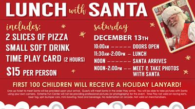 Santa’s making a stop at Extreme Fun Center! Don’t miss the magic — mark your calendars for Lunch with Santa!