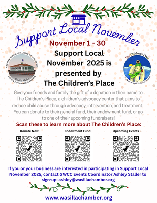For full details on all the new exciting features of GWCC's Support Local November, email contact@wasillachamber.org.